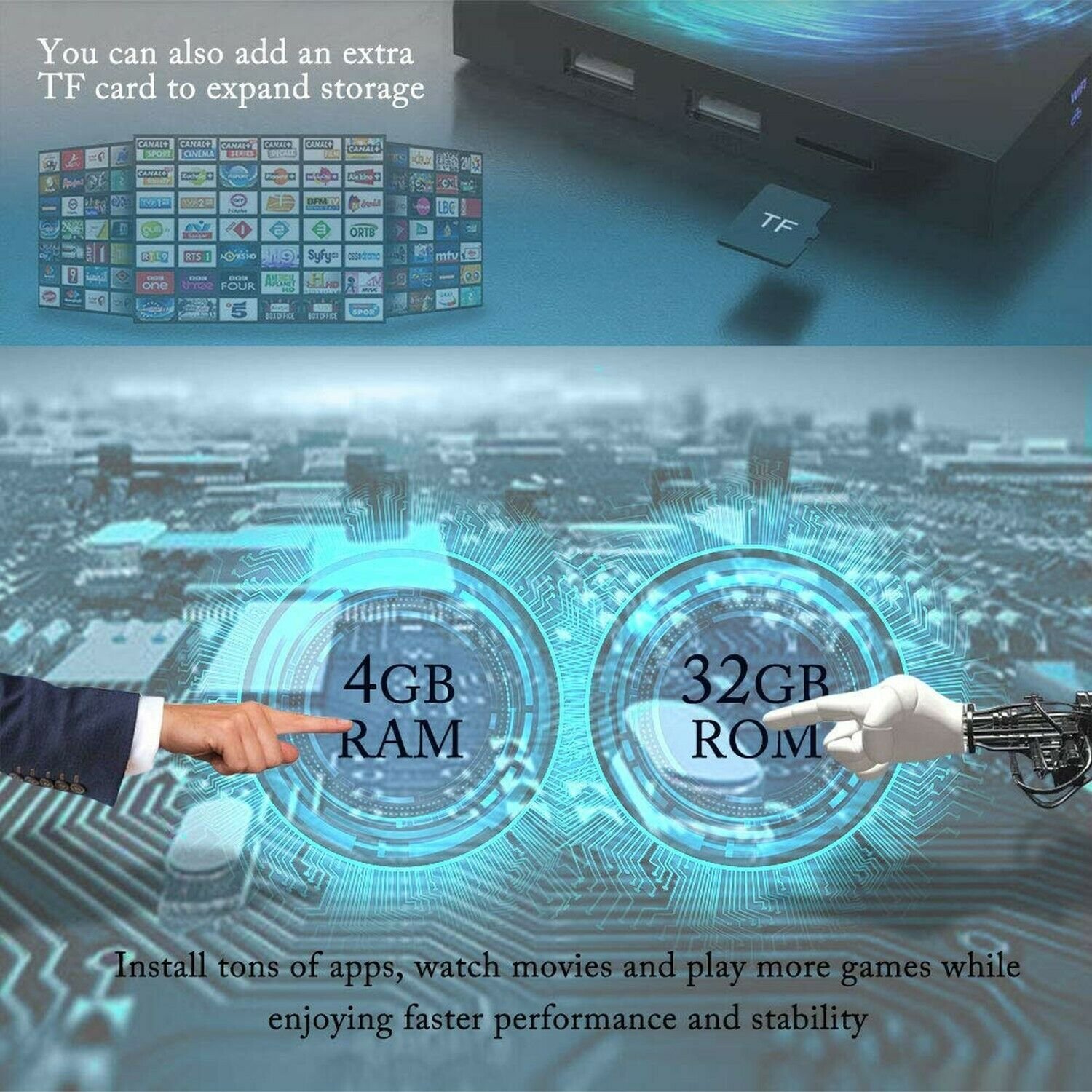 T95 Smart Android TV Box peut transformer votre téléviseur et moniteur LCD traditionnels en un centre multimédia en se connectant à Internet (via WiFi ou RJ45). Cette Smart Android TV Box vous apportera beaucoup de plaisir et de commodité avec sa fonctionnalité puissante: Android 11.0, processeur Allwinner H616 Quad-core A53 64Bit, GPU Mali-G31 MP2, 4 Go de RAM + 32 Go ROM / 6K / 8K de décodage de matériel vidéo 5G WiFi. Branchez-le simplement sur votre téléviseur et vous êtes prêt à partir!