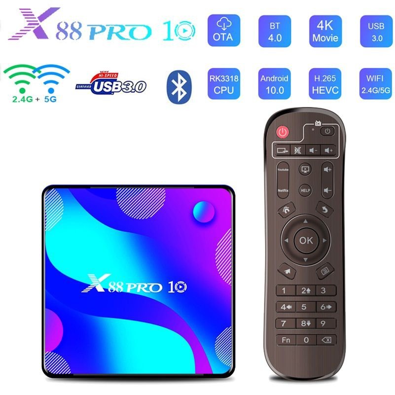 Tv box X88 Pro 10 décodeur android avec android 11.0 (dernière génération box tv), 4giga ram + 64 giga mémoire android 11.0 os ultra rapide 8k tv box bluetooth 5.0. avec misjur automatique de android